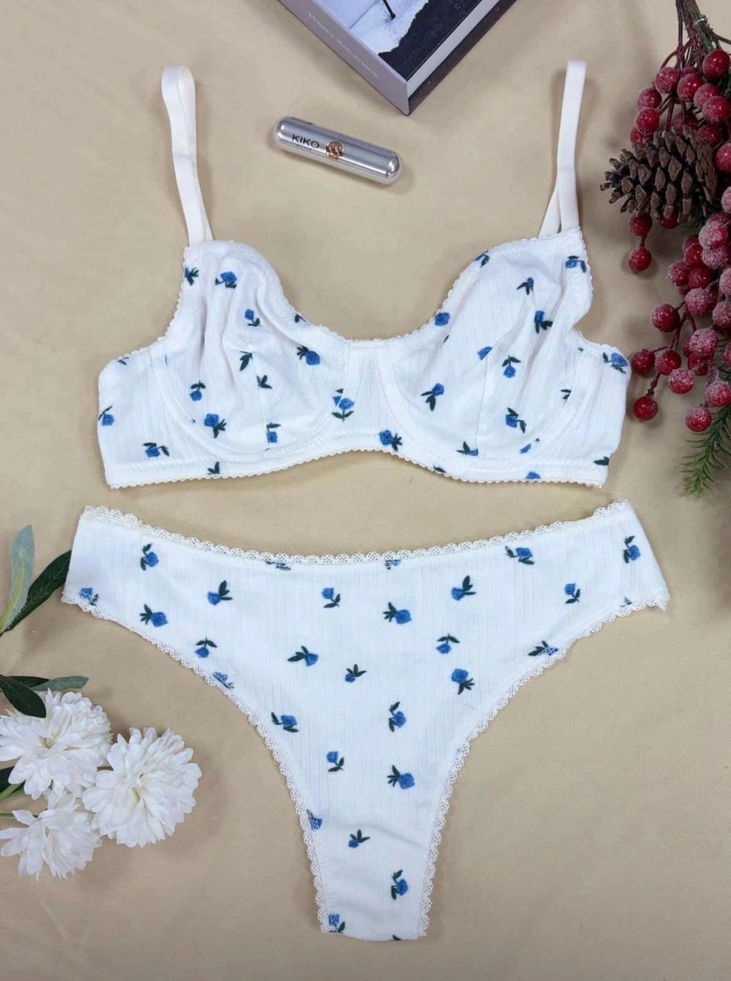 ÇİÇEK DESEN FİTİLLİ TAKIM