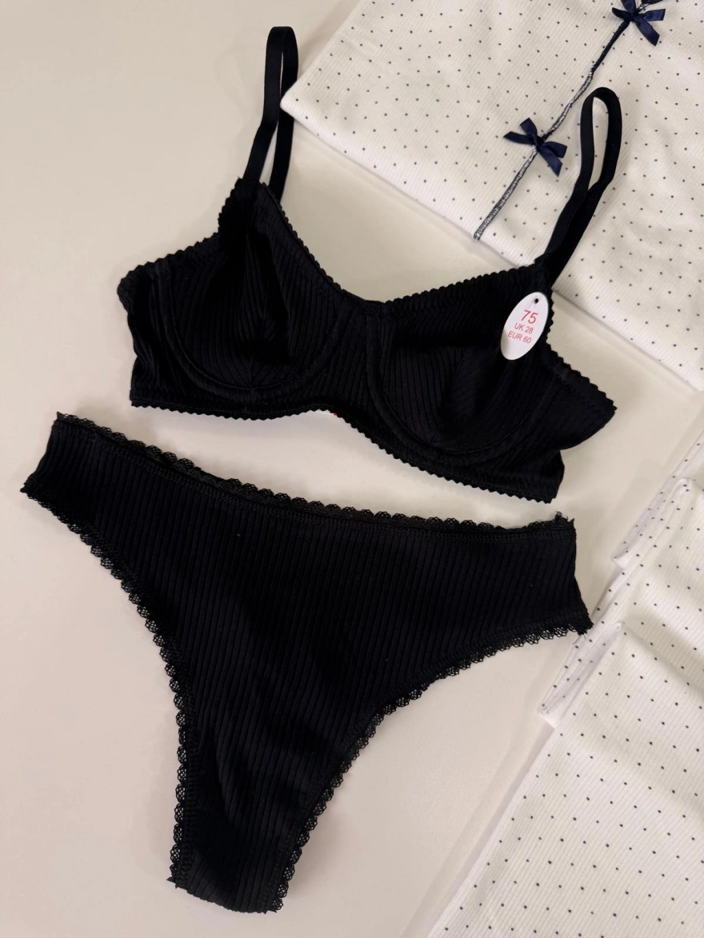 FİTİLLİ PAMUK SİYAH SÜTYEN TAKIM