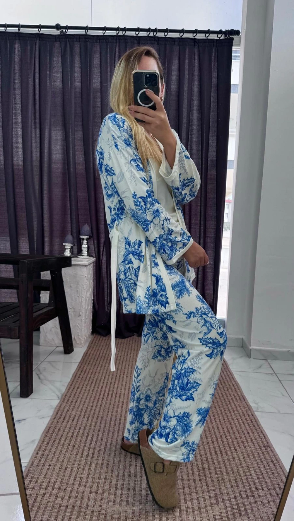 MAVİ ÇİÇEKLİ PİJAMA TAKIM